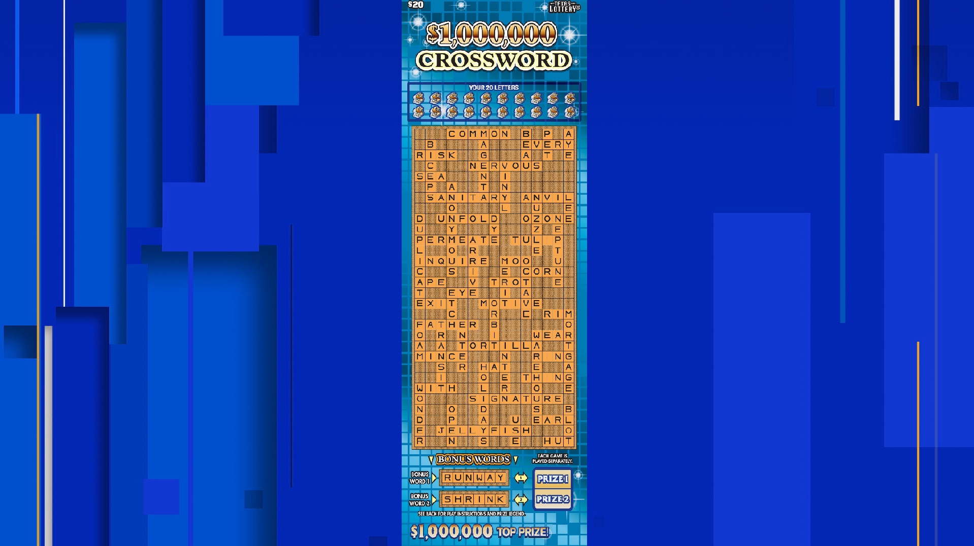 San Antonio resident wins $1 million in Texas Lottery scratch-off crossword game