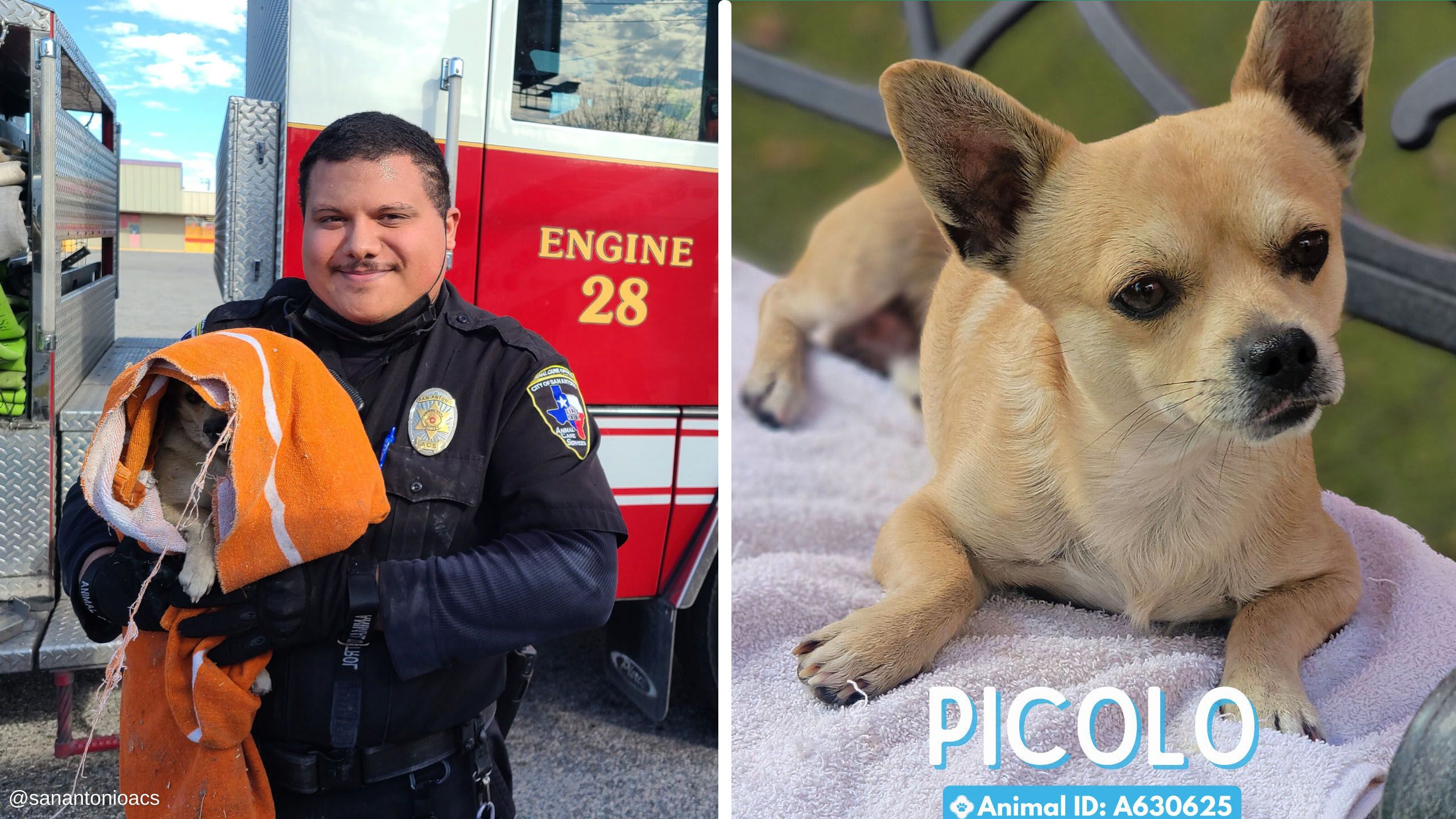Animal Care Services on Tuesday shared the story of the dog, now named Picolo, who was discovered by a passerby.