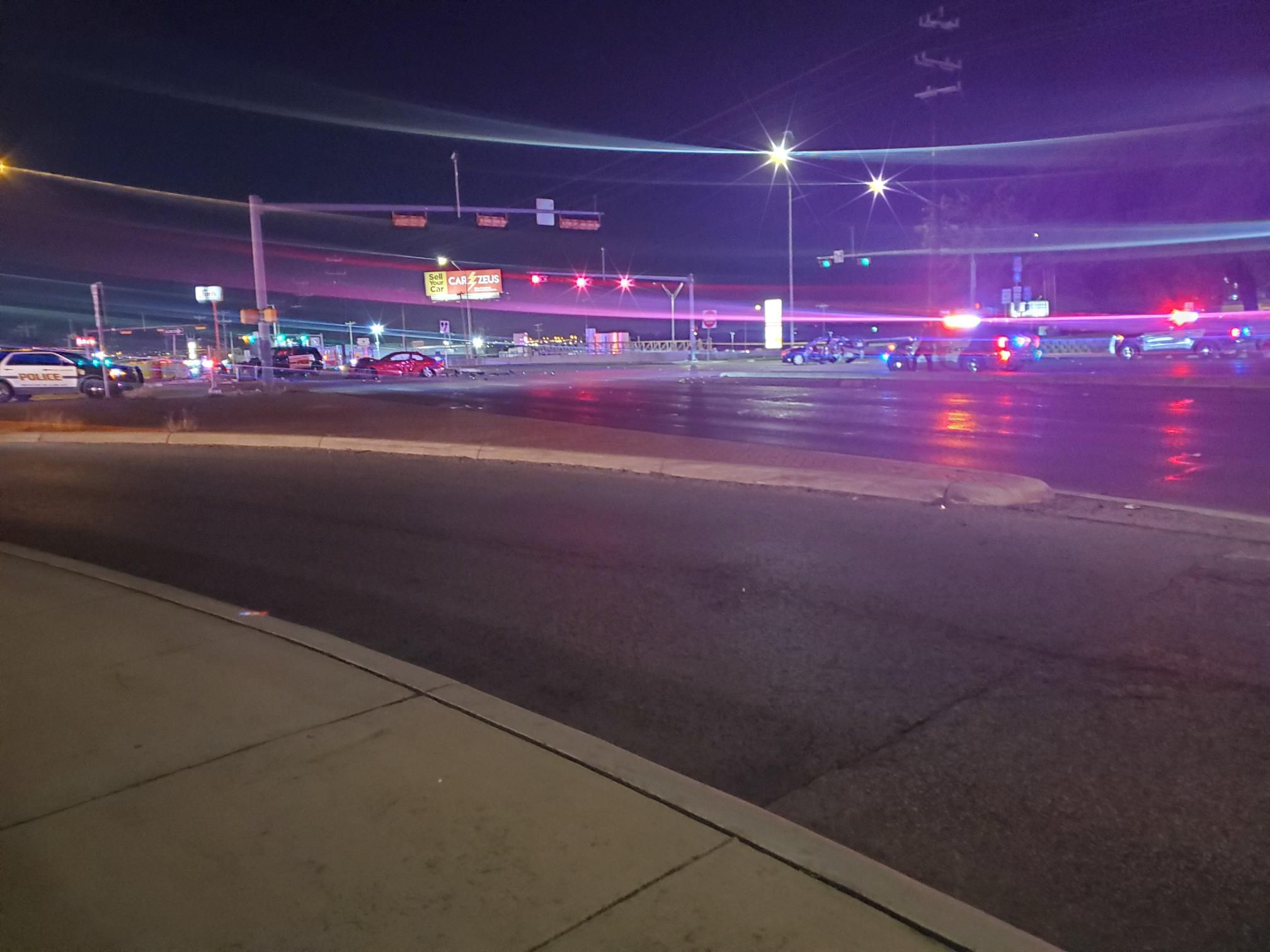Police said a sedan was stopped at a red light on the access road when another sedan traveling west struck the vehicle in the rear end.